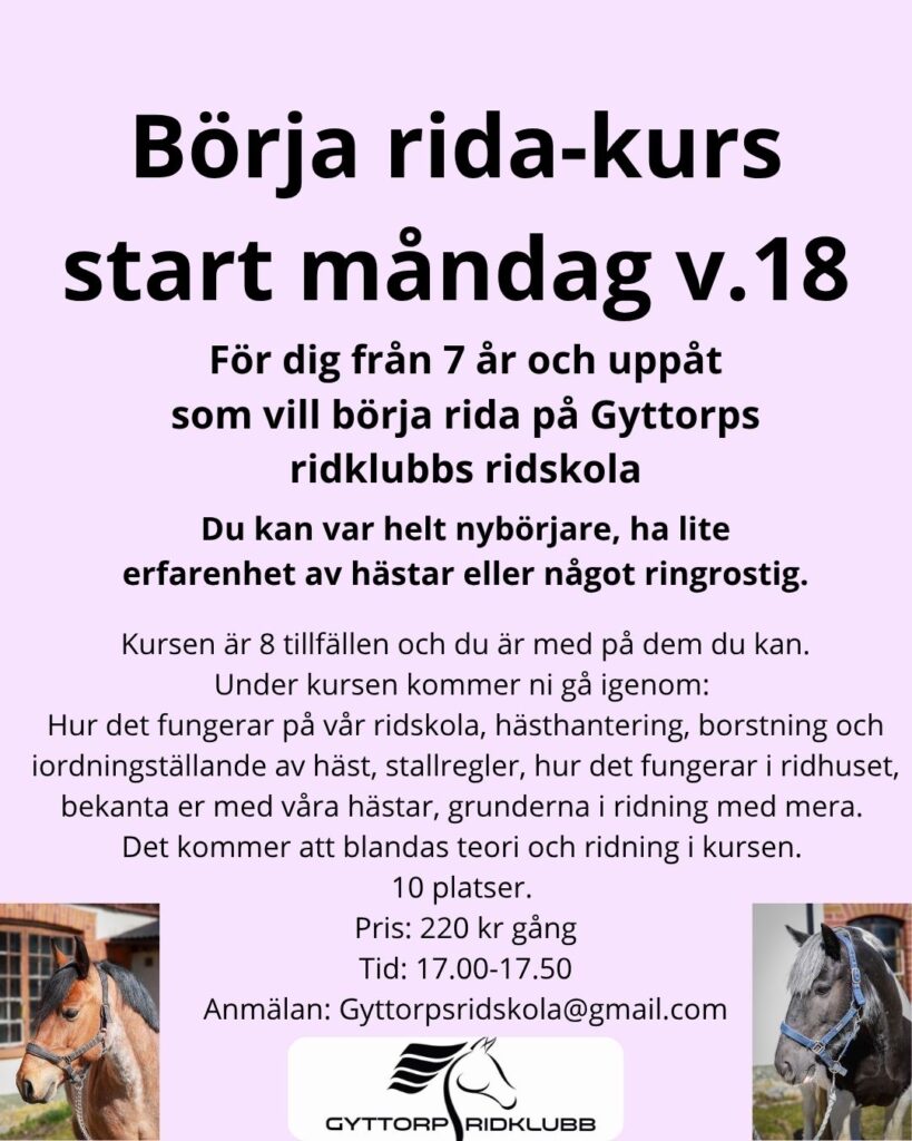 Anmälan: Gyttorpsridskola@gmail.com