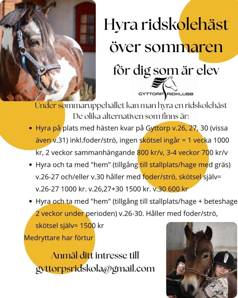 Intresseanmälan skickas till gyttorpsridskola@gmail.com