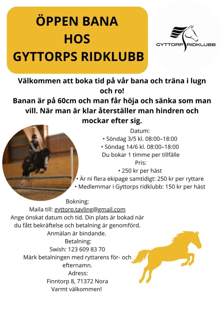 • Medlemmar i Gyttorps ridklubb: 150 kr per häst