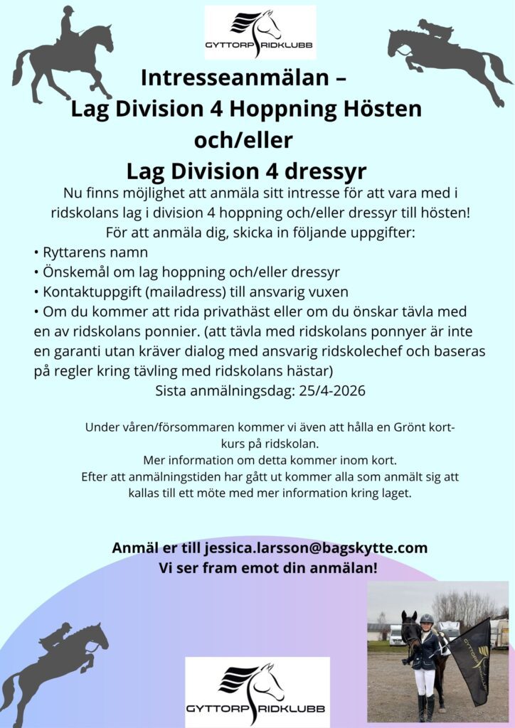 🐴Intresseanmälan – Lag Division 4 Hoppning Hösten och/eller Lag Division 4 dressyr 🐴